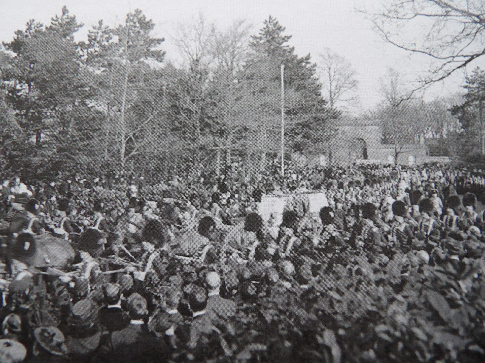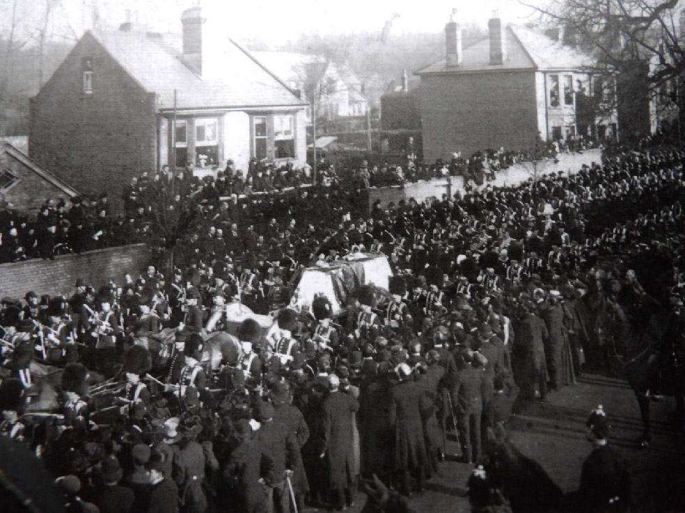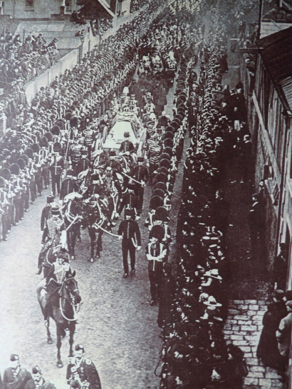 The muffled drums beat out a slow pace as the Queen’s entrance to Osborne was reached and the crowds of people there saw the Queen’s coffin borne on its way down hill.